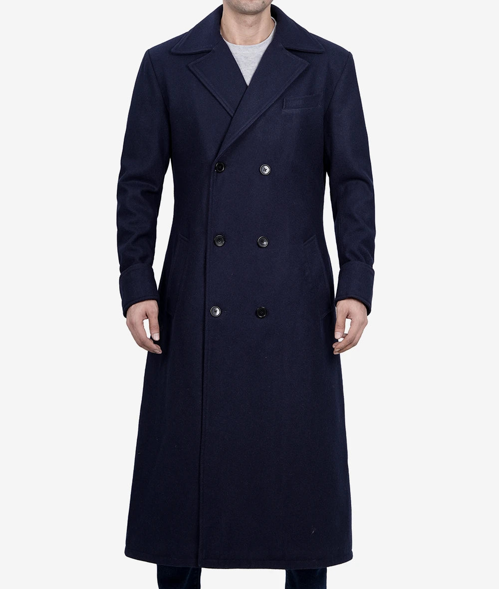 Step out in style with our Men's Dark Blue Double Breasted Wool Coat. Crafted from premium wool blend, this coat offers both elegance and warmth. The classic double-breasted design enhances your appearance, making it perfect for formal and casual occasions.