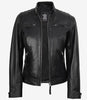 Womens Black Leather Biker Style Jacket - Quilted Shoulder